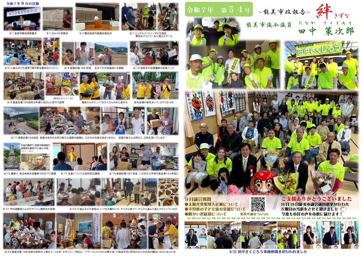 市民の皆様の声を大切にし、住みよいまちづくりを進めています!2025年10月「絆」54号発刊しました! クリックすると拡大します 議会質問で実現した52事業を一覧にまとめました「絆」36号