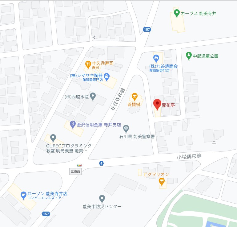 能美市議会議員 田中さくじろうは、下記の場所で活動を行っています(仕出し弁当 開花亭)